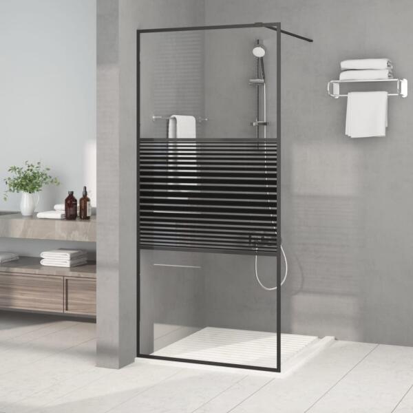 Tegye szebbé fürdőszobáját ezzel a modern, ESG üveges, küszöb nélküli zuhanyhoz használható zuhanyfallal! Erős és stabil szerkezet: A zuhanyparaván 5 mm vastag biztonsági ESG üveggel és alumíniumvázzal rendelkezik. Így biztos lehet benne, hogy a szerkezet beszerelés után erős lesz. Állítható méret: Az állítható profilnak köszönhetően bármilyen méretű és elrend