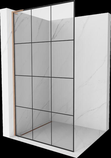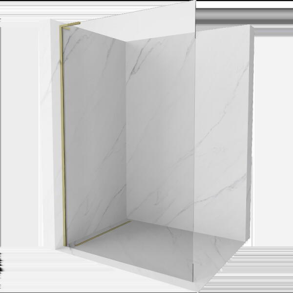 Fali profillal a falra szerelhető szálcsiszolt arany pengefal 8 mm-es Easy Clean edzett üvegből. |Méret: 155 cm|Magasság: 200 cm|Profil színe: szálcsiszolt arany|Üveg: átlátszó|8 mm vastag Easy Clean vízlepergető bevonattal ellátott edzett üvegből gyártjuk, mely elsőrendű megoldás vízkőfoltok, lerakódások megakadályozására. |Az állítható takaróprofil lehetővé tesz