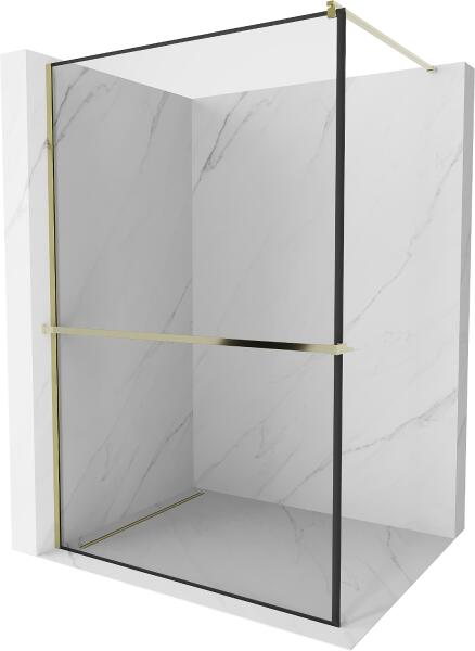 Magasság: 2000 mm|Szélesség: 1200 mm|Forma: Egy oldalú|Üveg típusa: biztonsági üveg|Üvegvastagság: 8 mm|Profil színe: Aranymatt|Walk-in merevítő: 1400 mm