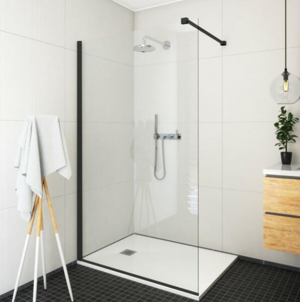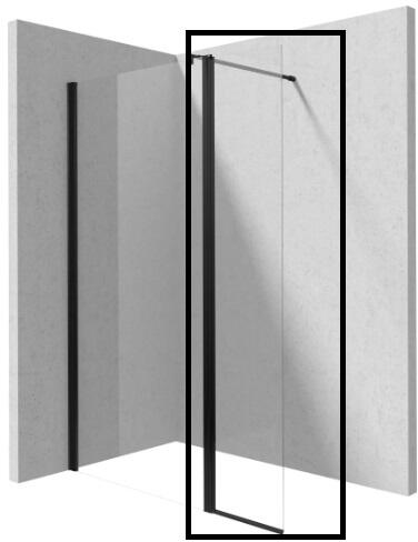 Kivitelezés: fekete|Alak: szögletes|Szélesség: 400 mm|Magasság: 2000 mm|Üveg kivitelezése: átlátszó|Üveg vastagsága: 6 mm|Hidrofób Active-Cover bevonat, amely megkönnyíti a víz lefolyását az üvegről|TOTALWHITE átlátszó üveg|Szerelés: Készre építhető KTS ajtókkal, KTS walk-in falak összeállításához
