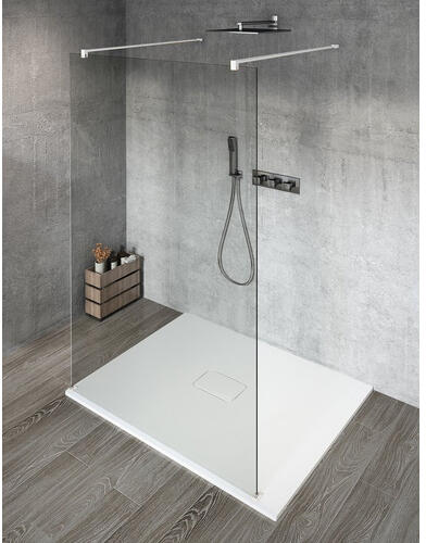 Sapho VARIO WHITE Szabadon álló zuhanyfal merőleges merevítőkkel, transzparent üveg, 1300mm A VARIO walk-in zuhanyfalkollekció intelligens és rugalmas megoldást kínál az egyéni és térbeli elrendezéseknek megfelelően. Az üvegek, támasztékok és profilok moduláris rendszere lehetővé teszi a zuhanyfalak méreteinek, színeinek és formáinak átgondolt kombinációját - akár a