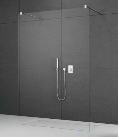 Kellően szabad teret biztosít a zuhanyzáshoz. 8 mm vastag Easy Clean vízlepergető bevonattal ellátott edzett üvegből gyártjuk, mely elsőrendű megoldás vízkőfoltok, lerakódások megakadályozására. Igény esetén, egyedi méretben is elkészítjük Önnek! A konstrukció stabilitását az elegáns króm rögzítő elemek biztosítják. A távtartó rúd mozgatható feje lehetővé