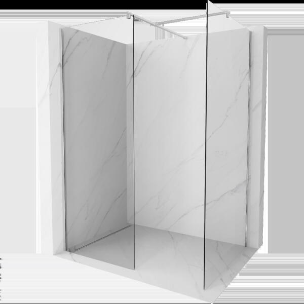 Radaway Modo New II 50 Walk-in zuhanyfal, átlátszó üveggel, króm profillal Magasság: 2 m 8 mm vastag Easy Clean vízlepergető bevonattal ellátott edzett üvegből , mely elsőrendű megoldás vízkőfoltok, lerakódások megakadályozására. A konstrukció stabilitását az elegáns króm rögzítő elemek biztosítják A távtartó rúd mozgatható feje lehetővé teszi a felszerelést a