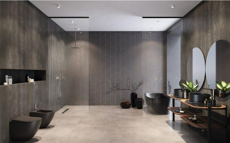 Panoráma a fürdőszobára. Zuhanykabin minimalista stílussal. Szinte észre sem veszi, és tágasabbá teszi a fürdőszobát. Különösen figyelemre méltó megoldás a Factory és Frame elnevezésű időtálló díszítés, amely kerámiafestékkel díszített rácsháló mintával rendelkezik, és a hőkezeléskor egy egységként szilárdul meg az edzett üveggel. Ezt a különleges techno