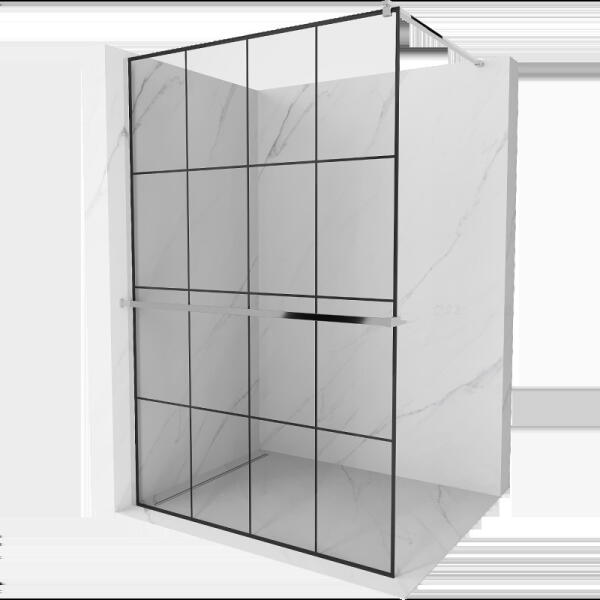 Kellően szabad teret biztosít a zuhanyzáshoz. 8 mm vastag Easy Clean vízlepergető bevonattal ellátott edzett üvegből gyártjuk, mely elsőrendű megoldás vízkőfoltok, lerakódások megakadályozására. Igény esetén, egyedi méretben is elkészítjük Önnek! A konstrukció stabilitását az elegáns fekete rögzítő elemek biztosítjákA távtartó rúd mozgatható feje lehetővé t