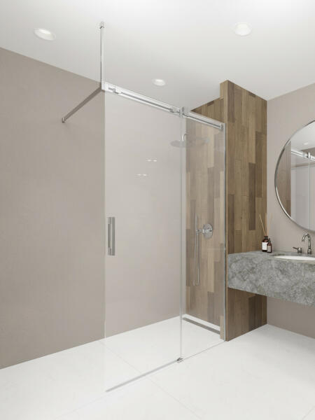 Panoráma a fürdőszobára. Zuhanykabin minimalista stílussal. Szinte észre sem veszi, és tágasabbá teszi a fürdőszobát. 8 mm vastag Easy Clean vízlepergető bevonattal ellátott edzett üvegből gyártjuk, mely elsőrendű megoldás vízkőfoltok, lerakódások megakadályozására. Az állítható takaróprofil lehetővé teszi a fal függőleges eltéréseinek kiigazítását. Szilár