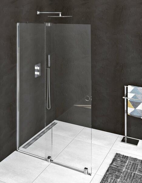 Panoráma a fürdőszobára. Zuhanykabin minimalista stílussal. Szinte észre sem veszi, és tágasabbá teszi a fürdőszobát. 8 mm vastag Easy Clean vízlepergető bevonattal ellátott edzett üvegből gyártjuk, mely elsőrendű megoldás vízkőfoltok, lerakódások megakadályozására. Az állítható takaróprofil lehetővé teszi a fal függőleges eltéréseinek kiigazítását. Zuhanyt