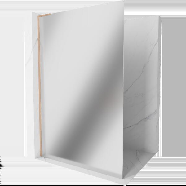 Csuklós/lengőajtós kivitelű szálcsiszolt arany kádparaván egy fix résszel. |Méret: 110 cm|Magasság: 150 cm|Profil színe: szálcsiszolt arany|Üveg: átlátszó|Jobbos kivitel|6 mm vastag, Easy Clean vízlepergető bevonattal ellátott edzett üveggel gyártjuk, mely elsőrendű megoldás a vízkőfoltok ellen, valamint a lerakódások megakadályozására. |Nagy stabilitást biztosító