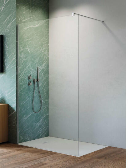Panoráma a fürdőszobára. Zuhanykabin minimalista stílussal. Szinte észre sem veszi, és tágasabbá teszi a fürdőszobát. 8 mm vastag Easy Clean vízlepergető bevonattal ellátott edzett üvegből gyártjuk, mely elsőrendű megoldás vízkőfoltok, lerakódások megakadályozására. Az állítható takaróprofil lehetővé teszi a fal függőleges eltéréseinek kiigazítását. Szilár
