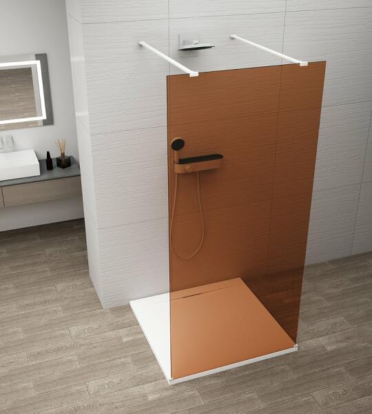 Walk-in zuhanyfal|Magasság: 210 cm|Szélesség: 110 cm|Forma: fix walk|Üveg típusa: marron üveg|Üvegbevonat: antidrop|Üveg vastagság: 8 mm|Az ár 2 darab Esca merőleges, fehér színű merevítőt tartalmaz! (mérete: 120 cm)|A kép illusztráció!