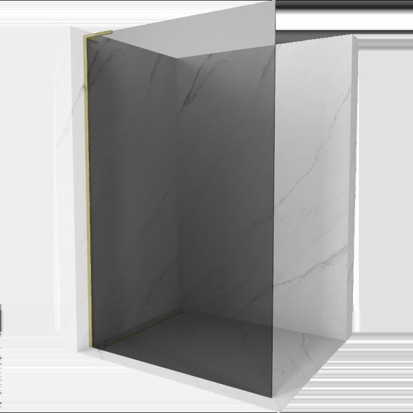 Walk-in zuhanyfal|Magasság: 210 cm|Mélység: 150 cm|Forma: fix oldalfal|Üveg típusa: flute üveg|Üvegbevonat: antidrop|Üveg vastagság: 8 mm|Profil színe: matt arany (az ár tartalmazza a fali profilt)|Az ár a merevítőt nem tartalmazza, külön szüskéges megvásárolni!|A kép illusztráció!
