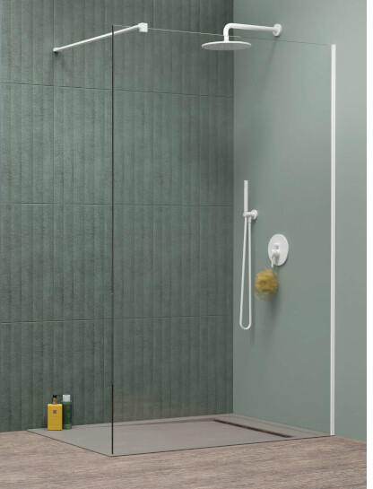 Panoráma a fürdőszobára. Zuhanykabin minimalista stílussal. Szinte észre sem veszi, és tágasabbá teszi a fürdőszobát. 8 mm vastag Easy Clean vízlepergető bevonattal ellátott edzett üvegből gyártjuk, mely elsőrendű megoldás vízkőfoltok, lerakódások megakadályozására. Az állítható takaróprofil lehetővé teszi a fal függőleges eltéréseinek kiigazítását. Szilár