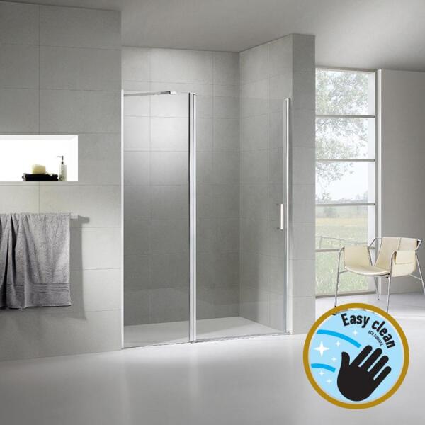Panoráma a fürdőszobára. Zuhanykabin minimalista stílussal. Szinte észre sem veszi, és tágasabbá teszi a fürdőszobát. 10 mm vastag Easy Clean vízlepergető bevonattal ellátott edzett üvegből gyártjuk, mely elsőrendű megoldás vízkőfoltok, lerakódások megakadályozására. Az állítható takaróprofil lehetővé teszi a fal függőleges eltéréseinek kiigazítását. Szilá
