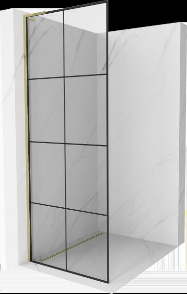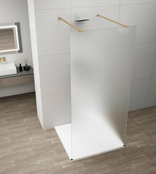 Walk-in zuhanyfal|Magasság: 210 cm|Mélység: 140 cm|Forma: fix walk|Üveg típusa: matt|Üvegbevonat: antidrop|Üveg vastagság: 8 mm|Az ár 2 darab Esca merőleges, matt arany színű merevítőt tartalmaz! (mérete: 120 cm)|A kép illusztráció!