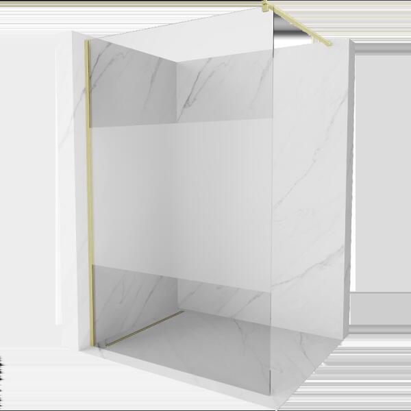 Magasság: 2000 mm|Szélesség: 800 mm|Forma: Egy oldalú|Üveg típusa: biztonsági üveg|Üvegvastagság: 8 mm|Profil színe: Aranymatt|Walk-in merevítő: 1400 mm