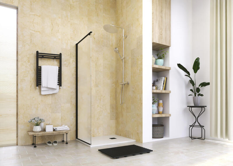 Panoráma a fürdőszobára. Zuhanykabin minimalista stílussal. Szinte észre sem veszi, és tágasabbá teszi a fürdőszobát. 8 mm vastag Easy Clean vízlepergető bevonattal ellátott edzett üvegből gyártjuk, mely elsőrendű megoldás vízkőfoltok, lerakódások megakadályozására. Az állítható takaróprofil lehetővé teszi a fal függőleges eltéréseinek kiigazítását. Szilár