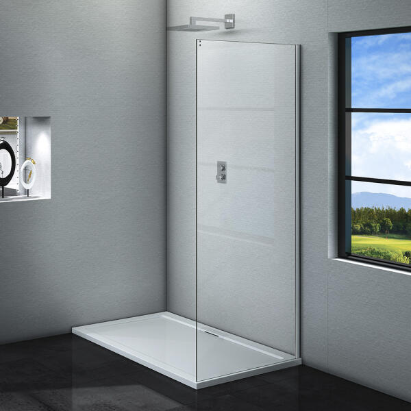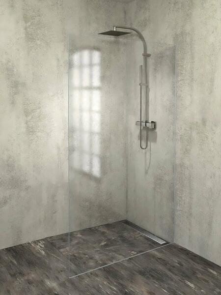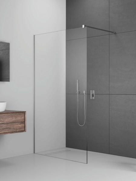 Panoráma a fürdőszobára. Zuhanykabin minimalista stílussal. Szinte észre sem veszi, és tágasabbá teszi a fürdőszobát. 8 mm vastag Easy Clean vízlepergető bevonattal ellátott edzett üvegből gyártjuk, mely elsőrendű megoldás vízkőfoltok, lerakódások megakadályozására. Az állítható takaróprofil lehetővé teszi a fal függőleges eltéréseinek kiigazítását. Zuhanyt