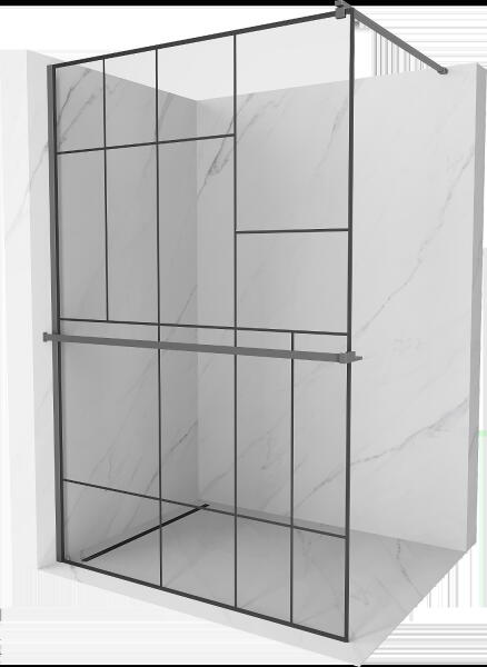 Fali profillal a falra szerelhető fekete pengefal 8 mm-es Easy Clean edzett üvegből. |Méret: 80x70 cm|Magasság: 200 cm|Profil színe: fekete|Üveg: átlátszó|8 mm vastag Easy Clean vízlepergető bevonattal ellátott edzett üvegből gyártjuk, mely elsőrendű megoldás vízkőfoltok, lerakódások megakadályozására. |Az állítható takaróprofil lehetővé teszi a fal függőleges elt