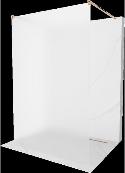 Fali profillal a falra szerelhető fehér pengefal 8 mm-es Easy Clean edzett üvegből. |Méret: 155 cm|Magasság: 200 cm|Profil színe: fehér|Üveg: átlátszó|8 mm vastag Easy Clean vízlepergető bevonattal ellátott edzett üvegből gyártjuk, mely elsőrendű megoldás vízkőfoltok, lerakódások megakadályozására. |Az állítható takaróprofil lehetővé teszi a fal függőleges elté