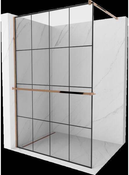 Termékleírás: Szélesség: 155 cm Magasság: 200 cm Összeszerelés: Univerzális Üveg színe: átlátszó - Przeźroczyste Kikészítés: Różowe złoto Üveg típusa: Hartowane Üvegvastagság: 8 mm Profil: alumínium Wspornik: Stal nierdzewna Długość max. Spornika: 150 cm A przycetnia wspornika lehetősége Powłoka szczyłająca czyszczenie Niwelacja nevreności walla Lehetőség hídr