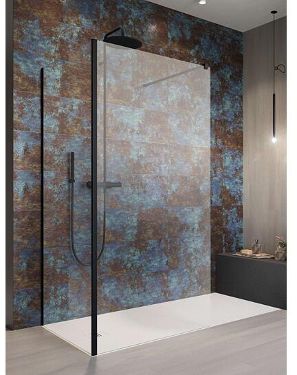 Kellően szabad teret biztosít a zuhanyzáshoz. 8 mm vastag Easy Clean vízlepergető bevonattal ellátott edzett üvegből gyártjuk, mely elsőrendű megoldás vízkőfoltok, lerakódások megakadályozására. Igény esetén, egyedi méretben is elkészítjük Önnek! A konstrukció stabilitását az elegáns fekete rögzítő elemek biztosítják. A távtartó rúd mozgatható feje lehetővé