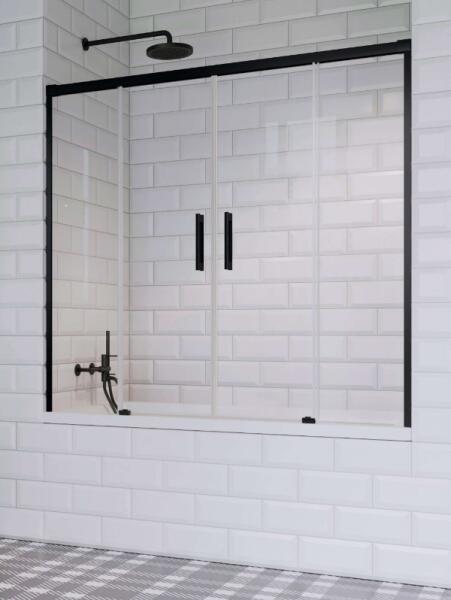 Tolóajtós fekete kádparaván dupla tolóajtóval, faltól-falig beépítésre. |Méret: 180 cm|Magasság: 150,5 cm|Profil színe: fekete|Üveg: átlátszó|6 mm vastag, Easy Clean vízlepergető bevonattal ellátott edzett üveggel gyártjuk, mely elsőrendű megoldás a vízkőfoltok ellen, valamint a lerakódások megakadályozására. |Stabil kabinszerkezet. |Praktikus fogantyúk, kívül-be