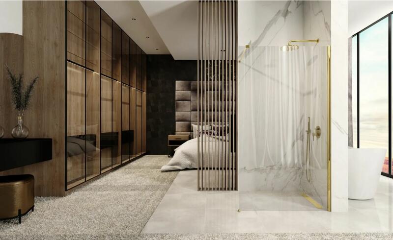 REA AERO, zuhany paraván WALK IN 120 x 195 cm, átlátszó üveg - arany profil, REA-K8443 A szabadon álló Walk-In zuhanyfal modern, minimalista megoldás. Egyszerű szerkezetének köszönhetően a fal zuhanytálcára vagy egyenes lefolyóval közvetlenül a padlóra szerelhető. A falon EasyClean felületkezelés található, amely könnyű tisztítást tesz lehetővé, és vastag edzett üve