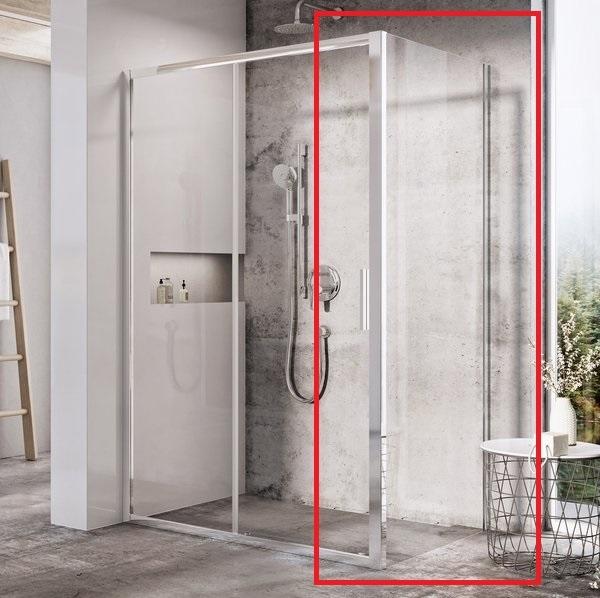 Fali profillal a falra szerelhető pengefal 8 mm-es Easy Clean edzett üvegből. |Méret: 130x100 cm|Magasság: 200 cm|Profil színe: króm|Üveg: átlátszó|8 mm vastag Easy Clean vízlepergető bevonattal ellátott edzett üvegből gyártjuk, mely elsőrendű megoldás vízkőfoltok, lerakódások megakadályozására. |Az állítható króm takaróprofil lehetővé teszi a fal függőleges elt