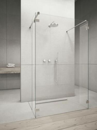 Radaway Euphoria WALK-IN Pengefal 8mm-es Easy Clean edzett üvegből, végein 30cm-es befordulóval. 8mm-es átlátszó üveggel. (Az Euphoria Walk-in I zuhanyfal 3 elemből áll: W4 zuhanyfal és 2 db oldalfal. A W4 zuhanyfal és az oldalfalnak külön kódja van. A zuhanyfal rendelésekor kérjük a termékkódokat pontosan megadni. ) Leírás: Kellő szabad teret biztosít a zuhanyzáshoz. 8mm