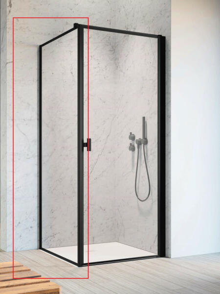 Walk-in zuhanyfal|Magasság: 210 cm|Szélesség: 110 cm|Forma: fix walk|Üveg típusa: transparent|Üvegbevonat: antidrop|Üveg vastagság: 8 mm|Az ár 2 darab Esca merőleges, matt fekete színű merevítőt tartalmaz! (mérete: 120 cm)|A kép illusztráció!