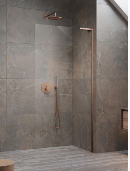 Panoráma a fürdőszobára. Zuhanykabin minimalista stílussal. Szinte észre sem veszi, és tágasabbá teszi a fürdőszobát. 8 mm vastag Easy Clean vízlepergető bevonattal ellátott edzett üvegből gyártjuk, mely elsőrendű megoldás vízkőfoltok, lerakódások megakadályozására. Az állítható takaróprofil lehetővé teszi a fal függőleges eltéréseinek kiigazítását. Zuhanyt