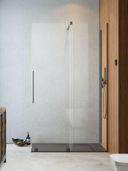 Kellően szabad teret biztosít a zuhanyzáshoz. 10 mm vastag Easy Clean vízlepergető bevonattal ellátott edzett üvegből gyártjuk, mely elsőrendű megoldás vízkőfoltok, lerakódások megakadályozására. Igény esetén, egyedi méretben is elkészítjük Önnek! A konstrukció stabilitását az elegáns fekete rögzítő elemek biztosítjákA távtartó rúd mozgatható feje lehetővé