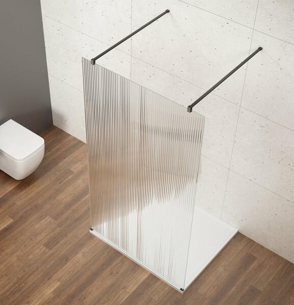 Walk-in zuhanyfal|Magasság: 210 cm|Mélység: 90 cm|Forma: fix oldalfal|Üveg típusa: transparent|Üvegbevonat: antidrop|Üveg vastagság: 8 mm|Profil színe: Fekete matt (az ár tartalmazza a fali profilt)|Az ár a merevítőt nem tartalmazza, külön szüskéges megvásárolni!|A kép illusztráció!
