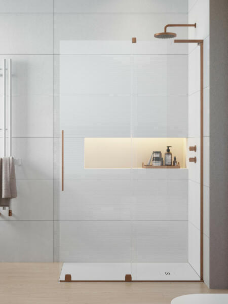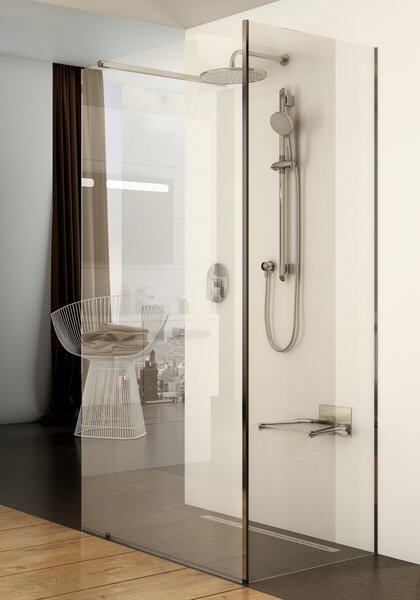 Panoráma a fürdőszobára. Zuhanykabin minimalista stílussal. Szinte észre sem veszi, és tágasabbá teszi a fürdőszobát. 8 mm vastag Easy Clean vízlepergető bevonattal ellátott edzett üvegből gyártjuk, mely elsőrendű megoldás vízkőfoltok, lerakódások megakadályozására. Az állítható takaróprofil lehetővé teszi a fal függőleges eltéréseinek kiigazítását. Zuhanyt