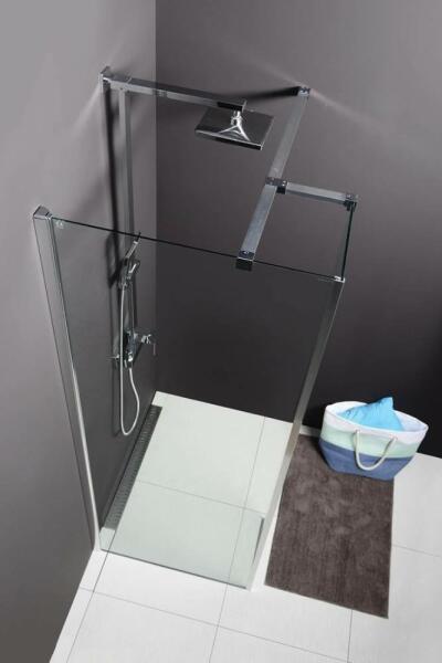 Kellően szabad teret biztosít a zuhanyzáshoz. 8 mm vastag Easy Clean vízlepergető bevonattal ellátott edzett üvegből gyártjuk, mely elsőrendű megoldás vízkőfoltok, lerakódások megakadályozására. Igény esetén, egyedi méretben is elkészítjük Önnek! A konstrukció stabilitását az elegáns króm rögzítő elemek biztosítják. A távtartó rúd mozgatható feje lehetővé