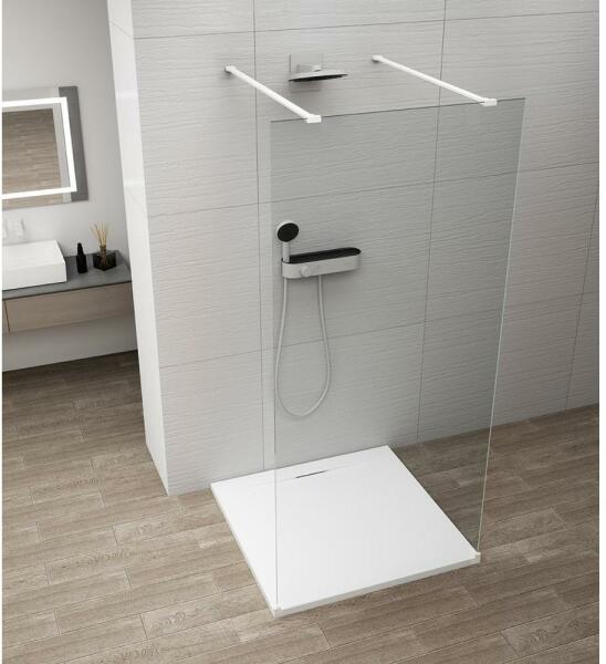 Besco Aveo 110x195 cm walk-in zuhanyfal Univerzális modell, balos vagy jobbos beszerelés Üvegvastagság: 8 mm edzett biztonsági üveg Üveg: Clear (átlátszó) A legújabb trend szerinti keret nélküli design Az átlagosnál magasabb kivitel Zuhanytálca nélkül is teljes értékű használhatóságot biztosít Állítható falrögzítő profil (20 mm eltérést is korrigálhat) 120 cm hoss