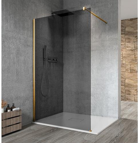 Sapho VARIO GOLD Fix zuhanyfal, fali profillal, merőleges merevítővel, füst üveg, 1300mm A VARIO walk-in zuhanyfalkollekció intelligens és rugalmas megoldást kínál az egyéni és térbeli elrendezéseknek megfelelően. Az üvegek, támasztékok és profilok moduláris rendszere lehetővé teszi a zuhanyfalak méreteinek, színeinek és formáinak átgondolt kombinációját - akár a fal