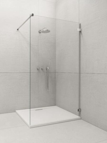 Panoráma a fürdőszobára. Zuhanykabin minimalista stílussal. Szinte észre sem veszi, és tágasabbá teszi a fürdőszobát. 8 mm vastag Easy Clean vízlepergető bevonattal ellátott edzett üvegből gyártjuk, mely elsőrendű megoldás vízkőfoltok, lerakódások megakadályozására. Az állítható takaróprofil lehetővé teszi a fal függőleges eltéréseinek kiigazítását. Zuhanyt