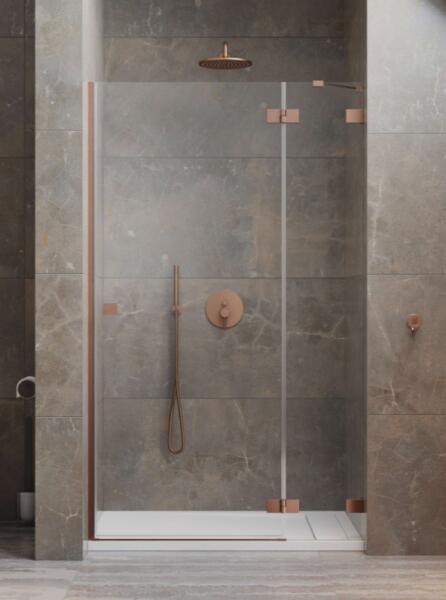 Kifelé nyíló zuhanyajtó fix résszel, szálcsiszolt réz kivitel. |Méret: 120 cm|Magasság: 200 cm|Profil színe: szálcsiszolt réz|Üveg: átlátszó|Jobbos kivitel|6 mm vastag, Easy Clean vízlepergető bevonattal ellátott edzett üveggel gyártjuk, mely elsőrendű megoldás a vízkőfoltok ellen, valamint a lerakódások megakadályozására. |Elegáns, praktikus fogantyú. |Nagy stabil
