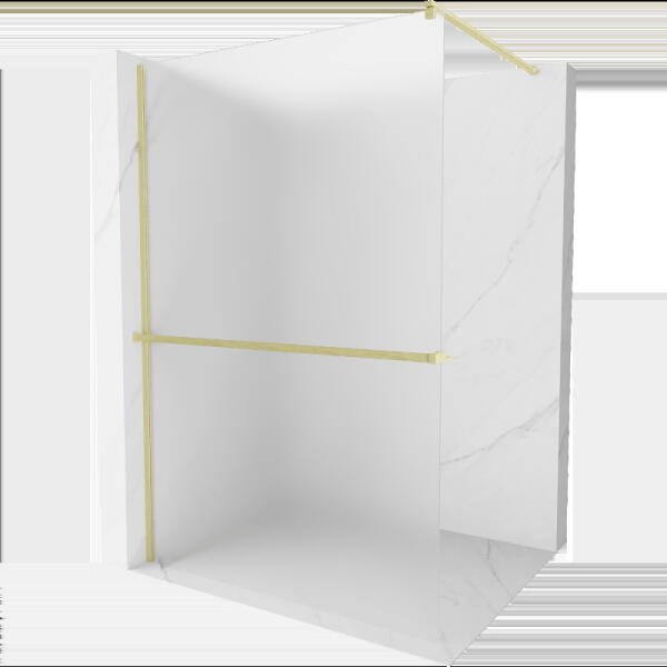 Fali profillal a falra szerelhető pengefal 8 mm-es Easy Clean edzett üvegből. |Méret: 130x80 cm|Magasság: 200 cm|Profil színe: króm|Üveg: átlátszó|8 mm vastag Easy Clean vízlepergető bevonattal ellátott edzett üvegből gyártjuk, mely elsőrendű megoldás vízkőfoltok, lerakódások megakadályozására. |Az állítható króm takaróprofil lehetővé teszi a fal függőleges elt