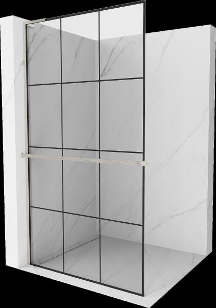 Alsógörgős zuhanyajtó egy fix résszel, szálcsiszolt arany kivitel. |Méret: 130 cm|Magasság: 200 cm|Profil színe: szálcsiszolt arany|Üveg: átlátszó|Balos kivitel|8 mm vastag, Easy Clean vízlepergető bevonattal ellátott edzett üveggel gyártjuk, mely elsőrendű megoldás a vízkőfoltok ellen, valamint a lerakódások megakadályozására. |Felső stabilizáló elem, innovatív la