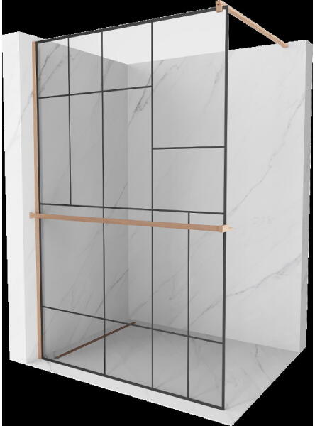 Fali profillal a falra szerelhető szálcsiszolt réz pengefal 8 mm-es Easy Clean edzett üvegből. |Méret: 80 cm|Magasság: 200 cm|Profil színe: szálcsiszolt réz|Üveg: átlátszó|8 mm vastag Easy Clean vízlepergető bevonattal ellátott edzett üvegből gyártjuk, mely elsőrendű megoldás vízkőfoltok, lerakódások megakadályozására. |Az állítható takaróprofil lehetővé teszi a