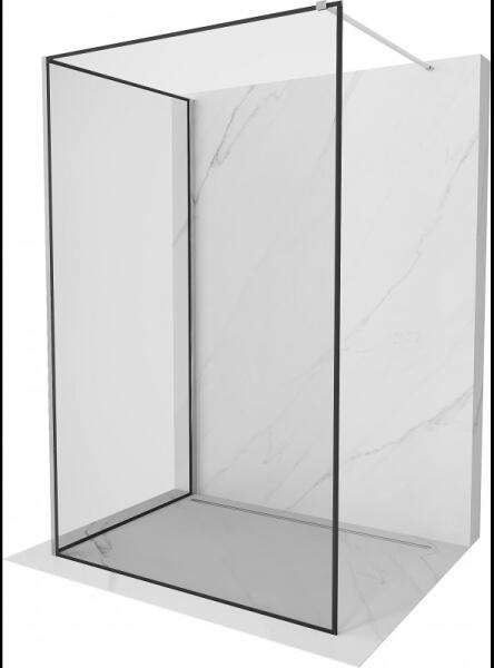Fali profillal a falra szerelhető fekete pengefal törölközőtartóval 8 mm-es Easy Clean edzett üvegből. |Méret: 110 cm|Magasság: 200 cm|Profil színe: fekete|Üveg: átlátszó|8 mm vastag Easy Clean vízlepergető bevonattal ellátott edzett üvegből gyártjuk, mely elsőrendű megoldás vízkőfoltok, lerakódások megakadályozására. |Az állítható takaróprofil lehetővé teszi a