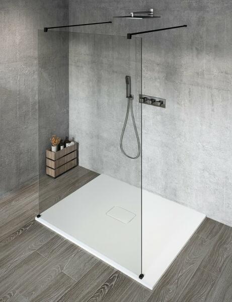 Panoráma a fürdőszobára. Zuhanykabin minimalista stílussal. Szinte észre sem veszi, és tágasabbá teszi a fürdőszobát. 8 mm vastag Easy Clean vízlepergető bevonattal ellátott edzett üvegből gyártjuk, mely elsőrendű megoldás vízkőfoltok, lerakódások megakadályozására. Az állítható takaróprofil lehetővé teszi a fal függőleges eltéréseinek kiigazítását. Zuhanyt