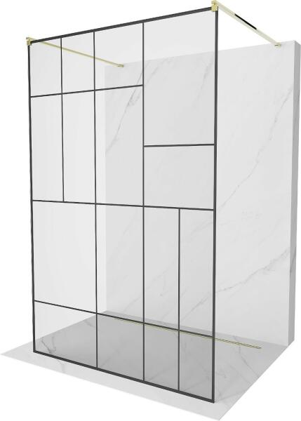 Fali profillal a falra szerelhető fekete pengefal 8 mm-es Easy Clean edzett üvegből, Frame mintával. |Méret: 125 cm|Magasság: 200 cm|Profil színe: fekete|Üveg: átlátszó|Különösen figyelemre méltó megoldás a Factory és Frame elnevezésű időtálló díszítés, amely kerámiafestékkel díszített rácsháló mintával rendelkezik, és a hőkezeléskor egy egységként szilárdul