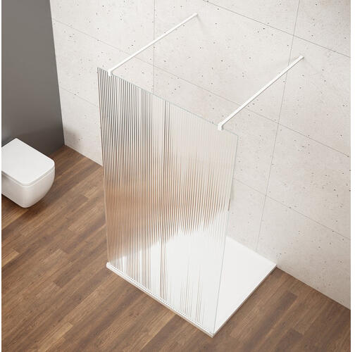 Walk-in zuhanyfal|Magasság: 210 cm|Mélység: 130 cm|Forma: fix oldalfal|Üveg típusa: flute üveg|Üvegbevonat: antidrop|Üveg vastagság: 8 mm|Profil színe: fehér (az ár tartalmazza a fali profilt)|Az ár a merevítőt nem tartalmazza, külön szüskéges megvásárolni!|A kép illusztráció!