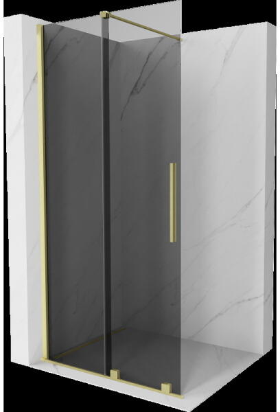 Fali profillal a falra szerelhető szálcsiszolt arany pengefal 8 mm-es Easy Clean edzett üvegből. |Méret: 155 cm|Magasság: 200 cm|Profil színe: szálcsiszolt arany|Üveg: átlátszó|8 mm vastag Easy Clean vízlepergető bevonattal ellátott edzett üvegből gyártjuk, mely elsőrendű megoldás vízkőfoltok, lerakódások megakadályozására. |Az állítható takaróprofil lehetővé tesz