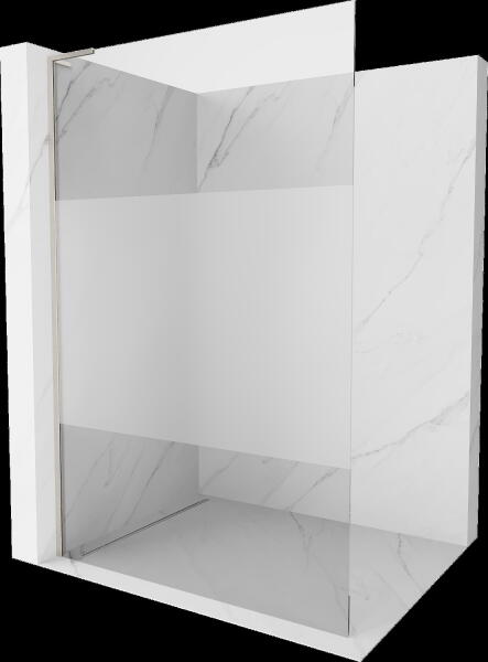 Profillal a falra szerelhető fix pengefal alsógörgős üvegrésszel, szálcsiszolt fegyvermetál kivitel. |Méret: 110 cm|Magasság: 200 cm|Profil színe: szálcsiszolt fegyvermetál|Üveg: átlátszó|Jobbos kivitel|8 mm vastag EasyClean vízlepergető bevonattal ellátott edzett üveggel gyártjuk, mely elsőrendű megoldás vízkőfoltok, lerakódások megakadályozására. |Felső stabiliz