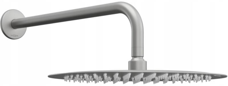 Műszaki adatok: Esőzuhany anyaga: S304 rozsdamentes acél Felületkezelés: grafit Méretek: 25 cm Standard csatlakozás G 1/2" Vastagság: 2 mm A lemez felülete ellenáll az elszíneződésnek és a korróziónak A zuhanyfej gumi fúvókákkal rendelkezik, amelyek megakadályozzák a vízkő lerakódását A kar anyaga: S304 rozsdamentes acél Felületkezelés: grafit Rögzítés módja: Fali