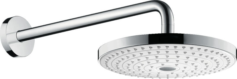 Hansgrohe Raindance Select S, fejzuhany 240 2jet zuhanykarral, fehér/króm, HAN-26466400 Termékleírás és paraméterek Tartalma: fejzuhany, zuhanykar Zuhanyfej mérete: Ø 243 mm Az adatfolyam típusa: RainAir, Rain Váltás a felső zuhanyon lévő Select gombbal Golyócsukló: a felső zuhany állítható dőlésszöge Vízsugár tárcsa anyaga: fém A vízsugár tárcsa felületkezelése: k